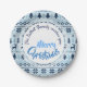 Customisable Merry Christmas paper plate in blue. Your name and message on beautiful Lapland style pattern in blue with transparent background (here pale blue background). You can easily change background colour and text (font, size, colour and position) by clicking the customise button..Matching personalised Christmas Paper napkin and more... Other models are available.