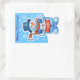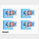 Christmas bright blue rectangular sticker Snowman drummer. and other Snowfolk.