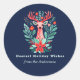 Christmas Blue Reindeer Floral Holiday Classic Round Sticker