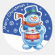 Christmas dark blue round sticker Snowman drummer. and other Snowfolk.