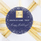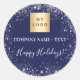 A classic navy blue background, decorated with faux silver glitter, sparkles. Personalise and add your business, company logo and a text. Text: Happy Holidays! written with a modern hand letteres style script.