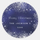 Christmas blue silver glitter classic round sticker