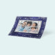 A deep blue background decorated with faux silver glitter, sparkling stars. The blue color is uneven. Personalize and add your own photo, name and a year. With the text: Merry Christmas. A window overlay over your photo.