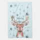 Christmas Blue Snowflakes Deer Tea Towel