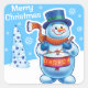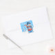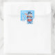 Christmas bright blue square sticker Snowman drummer. and other Snowfolk.