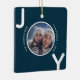 Christmas blue white joy photo modern ceramic ornament
