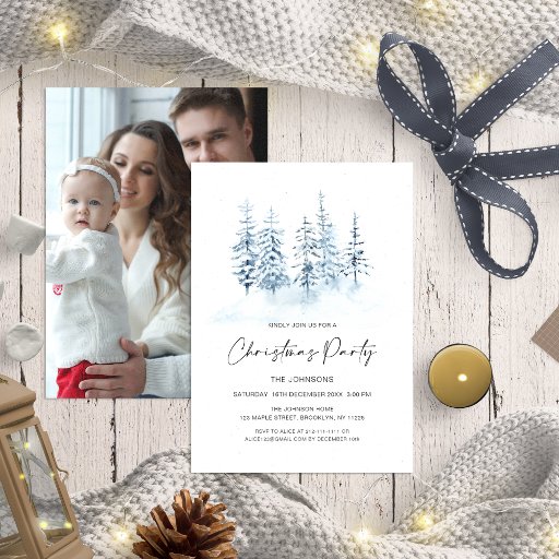 Christmas Blue Winter Forest Rustic Landscape Annual Family Update Holiday Card. Elegant Merry Christmas Annual Family Update with a beautiful winter rustic landscape in blue and white colours. Stylish and elegant design. One photo.