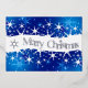 Snowy blue Merry Christmas illustration featuring a trendy snowfall graphic with white and blue snowflakes.