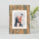 Christmas Modern Boho Botanical Greenery Two Photo Holiday Card in Gold Tan and Green
