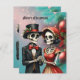 Christmas Bone Romance, A festive skeleton couple. Holiday Card