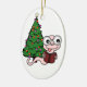 Christmas Bookworm Ornament. Bookworm in front of lighted Christmas tree.