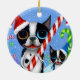 Christmas Boston Terrier Dogs Candy Cane Santa Hat Ceramic Tree Decoration
