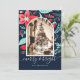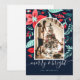 Christmas Botanical Red Floral Blue Arch Photo Holiday Card