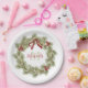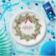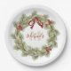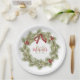 Christmas Botanical Wreath Red Holly Monogram Paper Plate