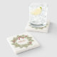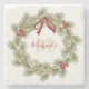 Christmas Botanical Wreath Red Holly Monogram Stone Coaster