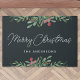 Custom-designed doormat for the holidays featuring rustic elegant winter botanicals design.