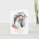 This elegant holiday card features a pretty gold geometric frame decorated with festive Christmas floral bouquets. The bouquets are made up of roses, poinsettias, pine cones, berries, and pine branches. Personalise with a custom holiday greeting, your names, and favourite photo. Add a personal message to the inside of the card if desired.