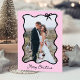 These adorable folded holiday cards feature your favourite photo in a trendy black wavy frame with a whimsical bow, on an elegant blush pink background. Modern script says "Merry Christmas," and there is room for a personal message inside.