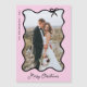 These chic and stylish magnetic holiday cards feature your favourite photo in a trendy black wavy frame with a whimsical bow, on an elegant blush pink background. Modern script says "Merry Christmas," and there is room for a personal message on the back."