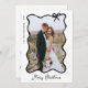 These chic and stylish, black and white holiday cards feature your favourite photo in a trendy black wavy frame with a whimsical bow, on an elegant white background. Modern script says "Merry Christmas," and there is room for a personal message on the back.