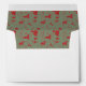 Holiday envelope with a with red silhouette of candy canes, leaves, and bows on green background and customizable text return address on the front of the envelope.
