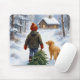 Christmas Boy Dragging an Evergreen Tree Home Mouse Pad