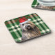 Christmas Briard Shepherd Dog Green Plaid Holiday Coaster