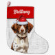 Christmas Brittany Dog with Name Woof Background Large Christmas Stocking
