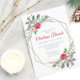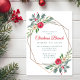 Elegant Christmas brunch invitation featuring watercolor bouquets of seasonal florals, berries, holly and greenery on a gold copper geometric frame. Easily personalise the type of event (brunch, dinner, tea, etc.), as well as other event details in modern red and green script and typography.