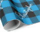 Christmas Buffalo Plaid Custom Name Rustic Blue Wrapping Paper