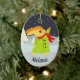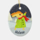 Cute personalised Christmas ornament for kids with bunny wrapped up for winter catching snowflakes.