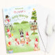 A Christmas and winter rabbit themed kid's Birthday invitation. The children's invite features cute bunny rabbits enjoying a Birthday party in a snowy winter garden, surrounded by carrot cake, a snowman and Christmas tree.