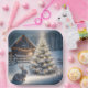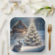 Christmas Bunny With Glowing Tree and Barn Paper Plate
