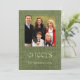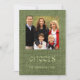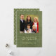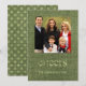 Trendy green burlap Seasons Greetings card with family photo placeholder customisable to your specifics.