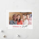 Share your team photo and express your gratitude to clients, family and friends and potential customers. A personal touch like a staff photo is unique to your business and allows you to be approachable and relatable. Customise the message and company name. This holiday card also skips needing a logo file. Merry and bright messaging.