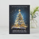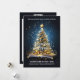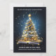 A beautiful and luxurious design featuring a green Christmas tree wrapped in gold glitter, sparkling bows and baubels which rests on the middle of the pages of an open book. The tree has a large golden star on the top and is surrounded by soft falling winter snow sparkles all set against a dark blue gradient background. The blue and gold theme has a formal, sophisticated and upmarket feel to it. Add your personal Season's Greetings message to the front together with your company details and your qr code (or replace this with your logo) to the back. These are ideal for the festive holiday period and convey the spirit of the season to customers, friends and family. Happy holidays!