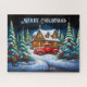 Christmas Cabin Snow Pine Forest Happy Holiday Art Jigsaw Puzzle