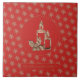 Christmas Candle Holly Snowflakes Red and Gold Tile