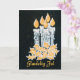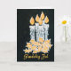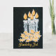 A chic Christmas Card with the greeting in Danish and five candles with holly, hand-painted in gold and silver paint on a starry black background.