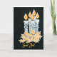 A chic Christmas Card with the greeting in Swedish and five candles with holly, hand-painted in gold and silver paint on a starry black background.