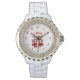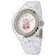 You can admire my beautiful Christmas drawing of two candy canes wrapped up in a beautiful red bow tie, with Merry Christmas. I call this drawing, "Christmas Candy Canes," added onto this women's rhinestone white enamel watch. This women's rhinestone white enamel watch makes the perfect Christmas gift to wish someone a, Merry Christmas."