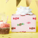 This cute wrapping paper is versatile and can be used for giving gifts or art and craft projects. The design features festive striped candy on a pink background.