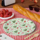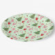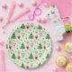 This cute plate is versatile and can be used for giving gifts or art and craft projects. The design features Christmas trees, candy canes, sweets and cakes on a green background.