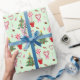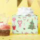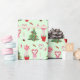 This cute wrapping paper is versatile and can be used for giving gifts or art and craft projects. The design features Christmas trees, candy canes, sweets and cakes on a green background.