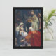 This double-sided Christmas card depicts the adoration of the three kings. On the reverse, a scene of the maji following the star allows room for your own handwritten note to loved ones.