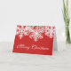 Christmas Holiday card shown with a red and white snowflakes print.