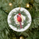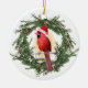 A Cardinal wearing a Santa's hat inside a holiday wreath