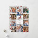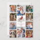 This unique photo collage Christmas card is perfect for showing off your family photos from the past year. A cute hand-painted chickadee is perched on a pinecone in the centre of this Christmas card, surrounded by 10 photos, on a simple white background. On the back is a heartfelt message of best Christmas wishes, that can be easily personalised.
