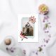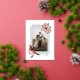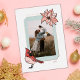 This gorgeous foil Christmas cardinal photo frame rose gold foil card features real foil text Happy Holidays and customisable year around a foil, geometric frame. Illustration features a speckled blue background with a cute cardinal in the lower left corner and a pink poinsettia in the opposite corner. Wintry but unique, this pink and blue art card features room for two photos, one portrait photo on the front, and a landscape orientated photo on the backside. Personalise with your own message and family names for a ready to send, festive and fun holiday card this year!
