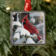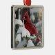 This Christmas ornament features a bright red beautiful male cardinal in a magical Forest.